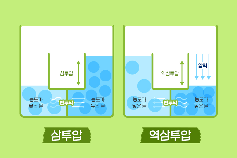 정수기의 원리는 삼투압의 반대, 역삼투압!