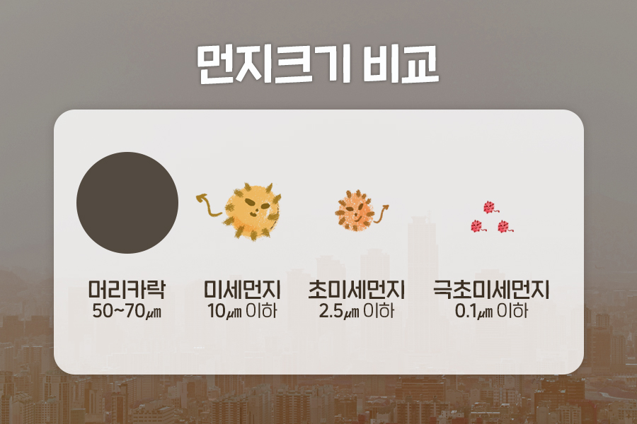 머리카락의 30분의 1 크기인 미세먼지