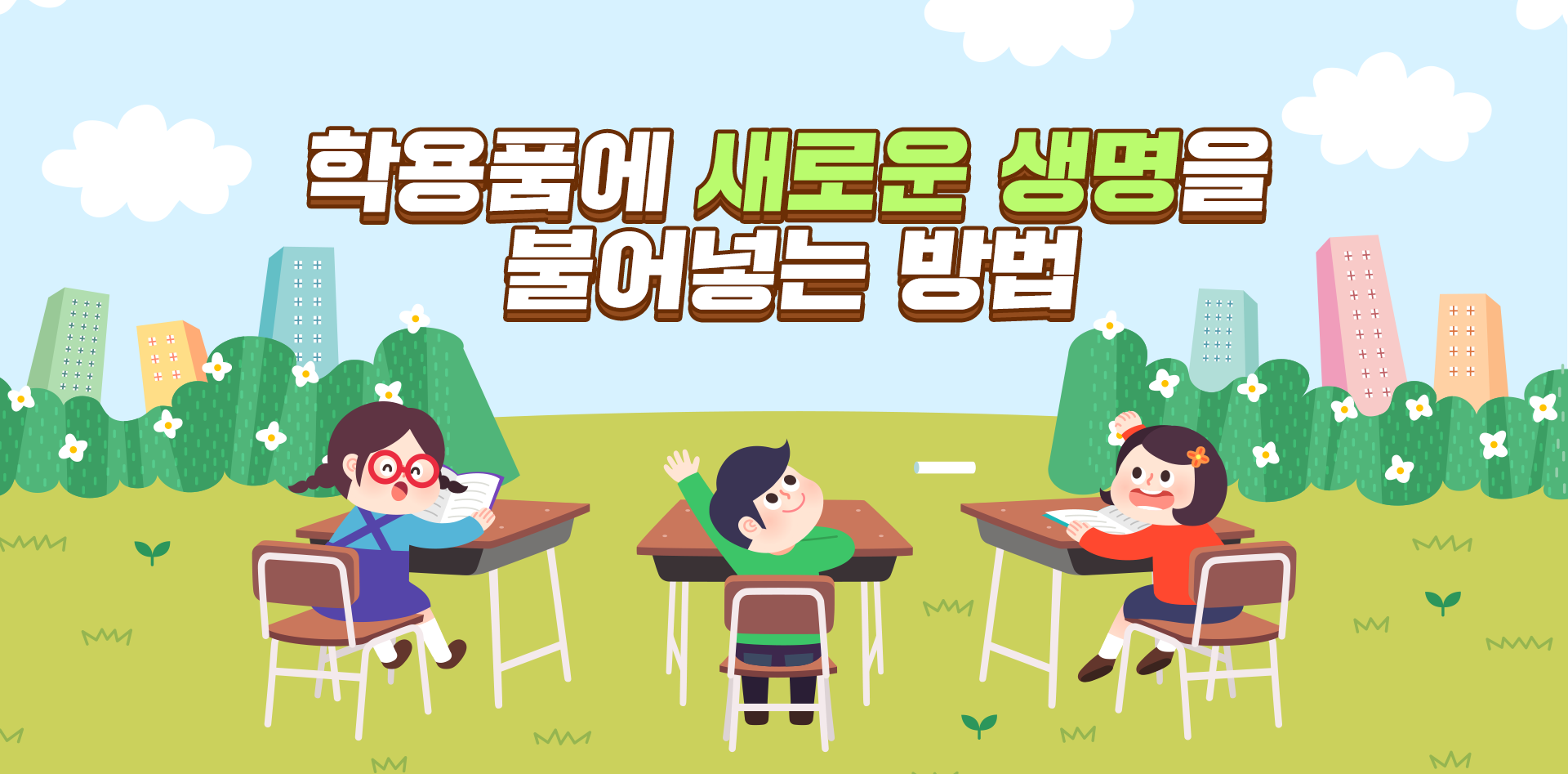 환경을 생각하는 착한 학용품 이야기 재미있으셨나요? 이렇게 다양한 친환경 학용품이 색다른 아이디어로 새롭게 태어났는데요! 환경을 생각한 학용품들이 더욱더 많아지길 바라봅니다. 이번 새 학기에는 생활 속에서 자원 순환을 실천할 수 있는 업사이클링 학용품을 사용하는 건 어떨까요?