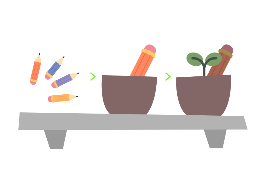 혹시 연필을 쓰다 몽땅 연필이 되어 쓰기 힘들었던 경험 다들 있으신가요? 연필 끝에 씨앗을 넣은 캡슐이 있는 ‘씨앗연필’도 아이디어가 돋보이는 업사이클링 제품인데요. 씨앗연필이 작아졌을 때 작은 화분에 심어주면, 흙 속의 수분에 의해 씨앗 캡슐이 녹으면서 새싹이 트고 식물이 자라난다고 해요. 작은 새싹이 피어나는 연필이라니! 아이들에게 더욱 의미 있을 것 같아요.