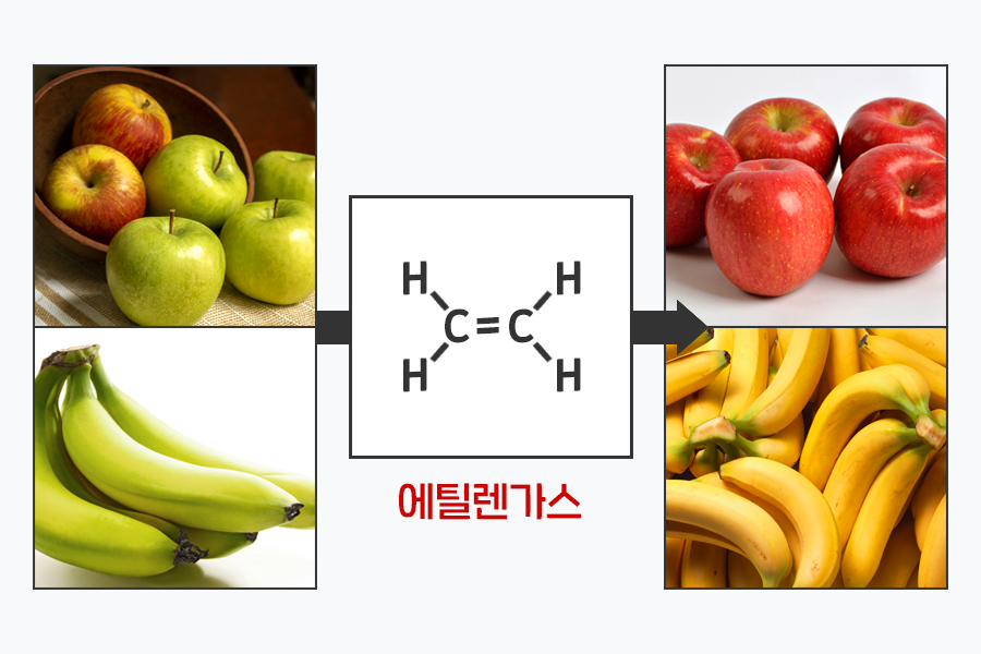 상큼한 사과는 간식으로도, 간단한 아침으로도 딱 좋은데요. 혹시, 여러분은 냉장고에 과일을 보관할 때, 사과와 함께 보관한 다른 과일이 평소보다 더 빨리 상한 경험 한번쯤 있으신가요? 주범은 바로 사과에서 나오는 물질인데요! 오늘은 우리가 즐겨먹는 과일을 익히는데 사용되는 화학물질에 대해 이야기 해볼까 합니다.