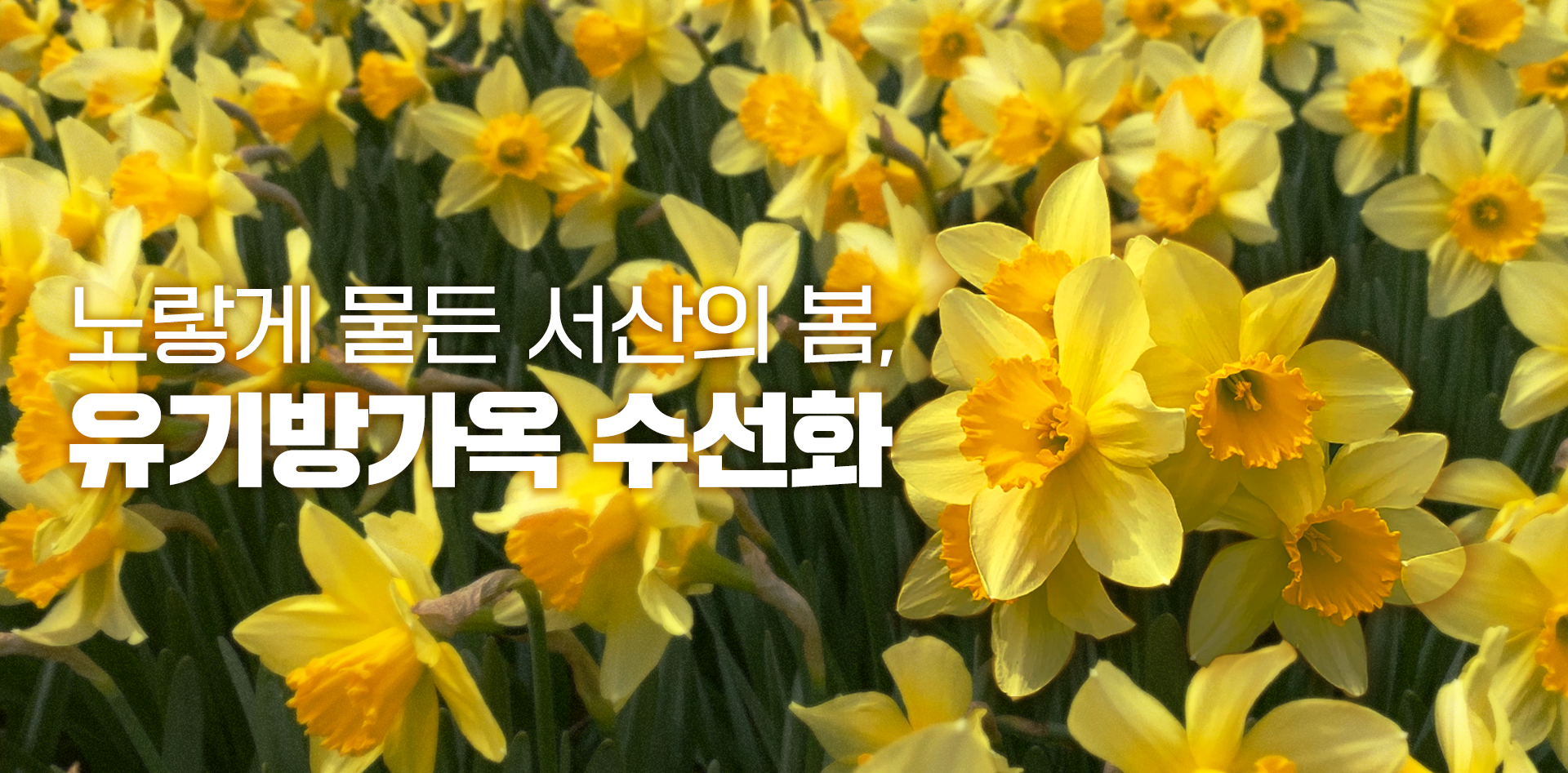 주말에 봄비가 내리고 꽃이 피기 시작하면서 봄이 한걸음 더 다가오고 있는데요. 서산에는 수선화 꽃으로 유명한 ‘유기방가옥’이라는 명소가 있습니다. ‘미스터 선샤인’, ‘직장의 신’ 등 드라마에도 등장해 더욱 알려진 서산 유기방가옥의 올해 수선화풍경 관람 기간은 3월 12일부터 4월 말까지인데요. 노란 수선화 꽃으로 물들기 시작한 서산 유기방가옥의 봄 풍경으로 함께 떠나볼까요?