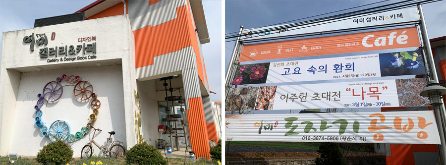 유기방가옥이 있는 여미리에는 ‘여미갤러리’라는 작은 카페도 있는데요. 유기방가옥에서 차로 3분 정도면 도착하는 아주 가까운 거리에 있습니다. 10년 넘게 방치되던 마을 정미소를 리모델링 해 갤러리와 카페로 만들었다고 합니다.