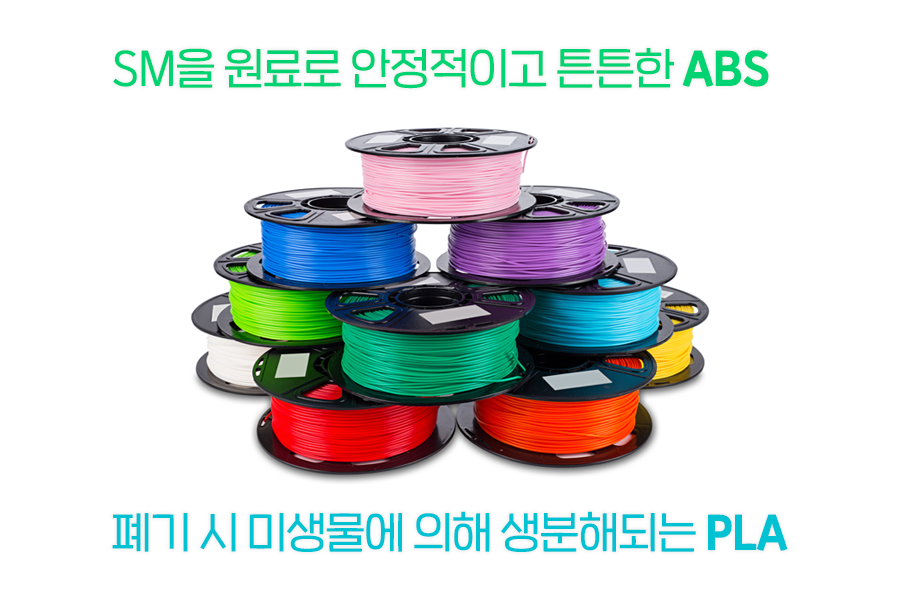 3D 프린터 출력물의 재료가 되는 플라스틱 수지를 필라멘트라고 하는데요. 대표적인 플라스틱 필라멘트 소재로 ABS(Acrylonitrile Butadiene Styrene)와 PLA(Poly Lactic Acid)를 꼽을 수 있습니다.