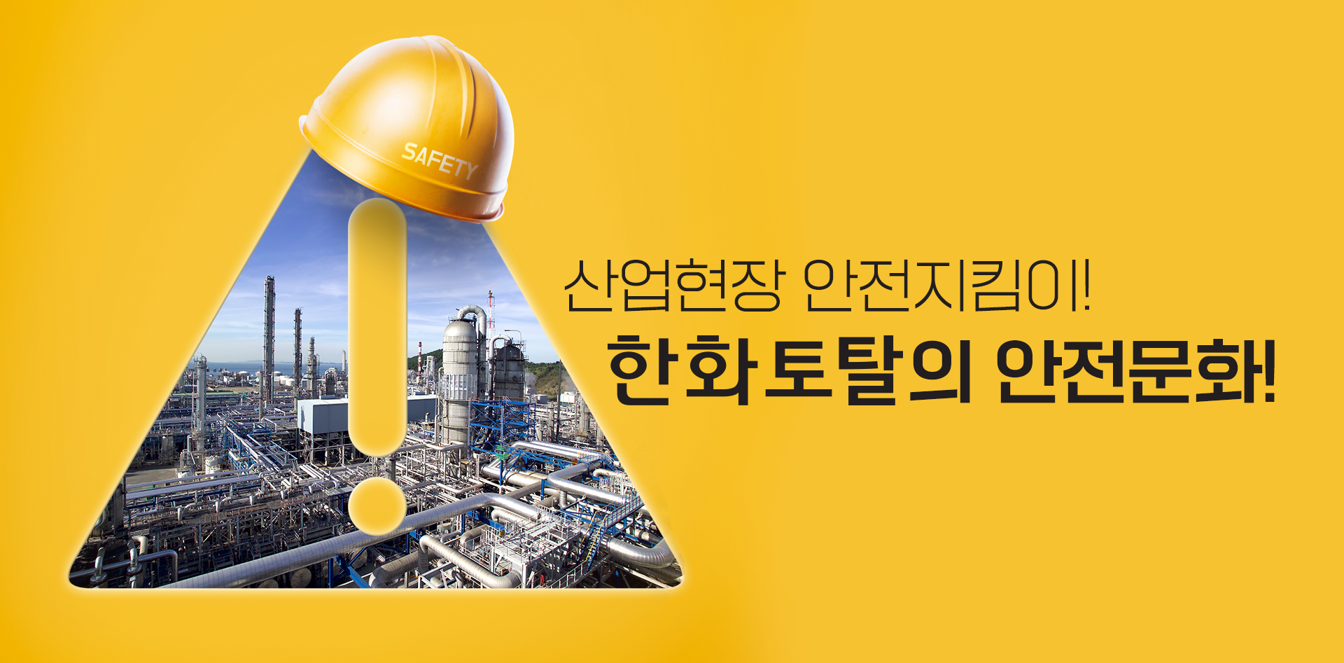 석유화학 공장에서 안전은 가장 중요한 최우선 가치입니다. 한화토탈은 이를 위한 투자를 지속해서 확대하고, 임직원들의 안전의식을 고취하기 위한 다양한 교육과 캠페인을 진행하고 있습니다. 앞으로도 한화토탈은 고유의 안전문화를 구축하기 위해 노력할 것입니다. 여러분도 안전! 또 안전! 항상 주의하시길 바랍니다.
