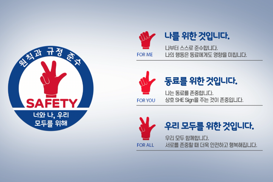 ‘Be faithful to rules’ 캠페인은 공장 내에서의 보행, 운전 등 이동 시 안전을 강조하는데요. 이동 시 휴대전화 사용을 금지하고, 공장 단지 내에서 저속 운전하는 등의 기본적인 규칙을 확실히 지키도록 권유하고 있습니다. 얼핏 들으면 사소한 일처럼 보이지만, 이런 간단한 규칙을 지킴으로써 공장을 안전하게 가동할 수 있는 것 아닐까요?