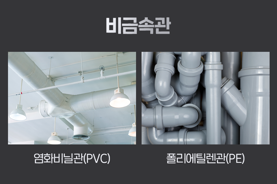 이외에도 고무호스관, 목관, 유리관, 콘크리트관 등 다양한 재질의 비금속관이 우리 생활에서 사용되고 있습니다.