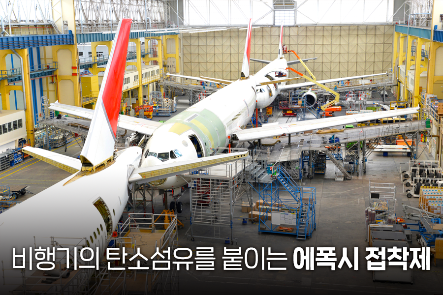 이액성 에폭시 수지는 경화제와 혼합하면 경화됩니다. 에폭시드 분자와 경화제가 반응하면 단단하고 딱딱한 고체가 만들어지는 것이죠. 에폭시 접착제가 고체로 변하기 위해선 온도의 변화가 필요합니다. 접착제를 영구히 고정시키기 위해 오븐을 사용합니다. 그러니 오븐에 들어가기 전까지는 접착하는 물체의 수정이 가능합니다. 비행기는 가벼우면서 단단한 탄소섬유로 만들어지는데 이러한 탄소섬유를 붙이는데 에폭시 접착제가 사용됩니다.