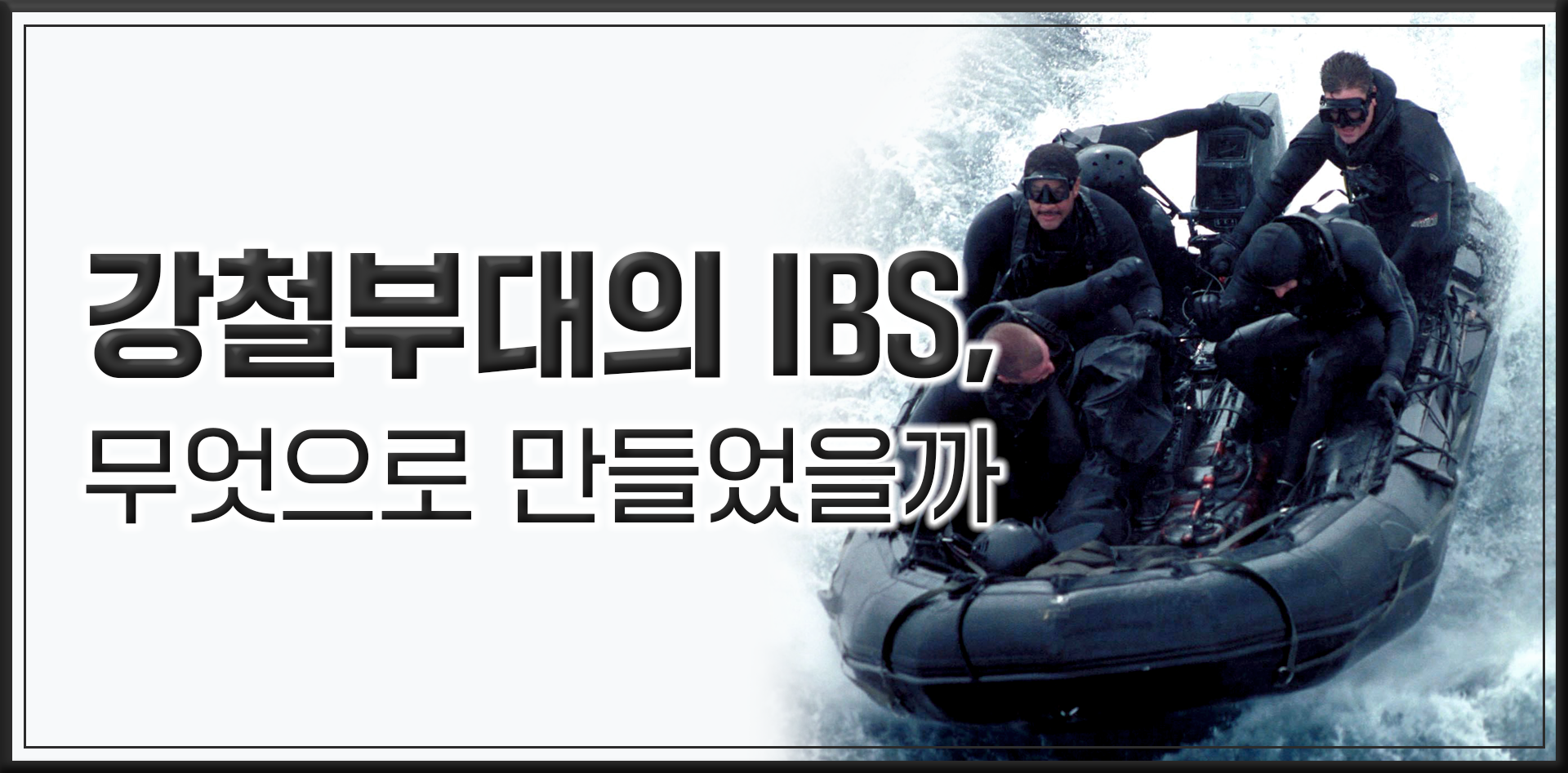 <강철부대> 미션 중에 자주 등장하는 IBS(Inflatable Boat Small), 즉 팽창식 소형고무보트는 군대에서 상륙 기습작전이나 도하작전 등에서 침투, 정찰, 장비 수송 등의 중요한 임무에 쓰이고 있습니다. 따라서 IBS의 내구력은 상당히 중요한 요소일 것 같은데요.