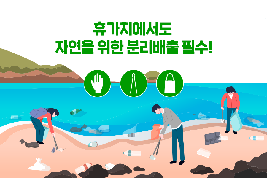 무더위에 더욱 지친 일상에서 벗어나기 위해, 여름철 우리는 피서를 떠납니다. 올여름, 또 다른 추억을 남길 생각에 벌써 마음이 들뜨네요. 하지만 피서객이 떠난 그 자리에는 어마어마한 양의 쓰레기가 남는다는 점 역시 기억해 주셔야 합니다.
