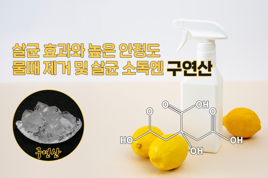 구연산은 맛과 향을 내거나 식품을 보존하기 위한 식품 첨가제로 많이 사용되며 헌혈시 헌혈팩에 넣어서 혈액의 응고를 막는 항응고제로 사용하거나 핸드크림의 산도를 조절하는 등 다방면에서 사용됩니다. 구연산은 먹을 수 있는 산성 물질임과 동시에 살균 효과도 있고 안정도도 높은 편이어서 가습기나 전기 주전자의 물때 제거 및 살균 소독에 사용할 수 있습니다. 그러나 약한 산성임에도 약산 중에서는 강한 편이기 때문에 사용 후 반드시 잘 헹구고, 가루 형태로 사용 시 흡입하지 않도록 유의해야 합니다.