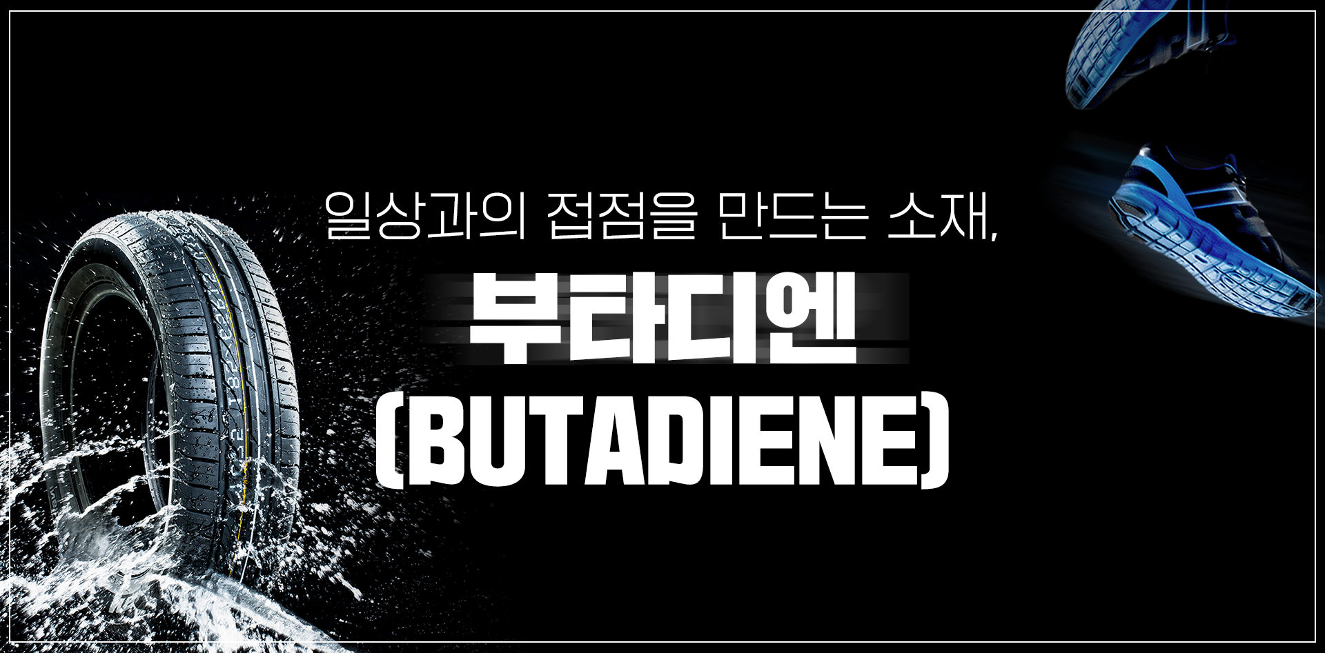 부타디엔은 합성고무의 핵심 원료로 유명한 소재인데요. 타이어부터 운동화까지, 쓰임새가 광범위하기 때문에 우리 생활과 아주 밀접한 관계를 맺고 있는 소재라고 할 수 있습니다.