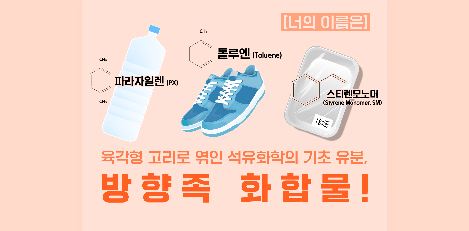 오늘은 석유화학에서 자주 언급되는 방향족 화합물들에 대해 알아봤습니다. 오늘 알아본 방향족 화합물들은 석유화학 제품을 합성하기 위한 기초 재료들로 주로 사용되는 물질인데요. 신발의 우레탄 깔창, 합성 섬유나 필름, 스티로폼 등 우리 일상과 밀접한 석유화학 제품들의 원재료랍니다. 오늘 알아본 방향족 화합물들은 모두 석유화학의 기초유분으로 쓰이는 ‘모노머(Monomer)’들인데요. PX, SM 등 다소 어렵고 모호하게 느껴졌을 석유화학 기초유분들의 이름이 조금 더 친숙하게 된 계기가 됐으면 합니다!