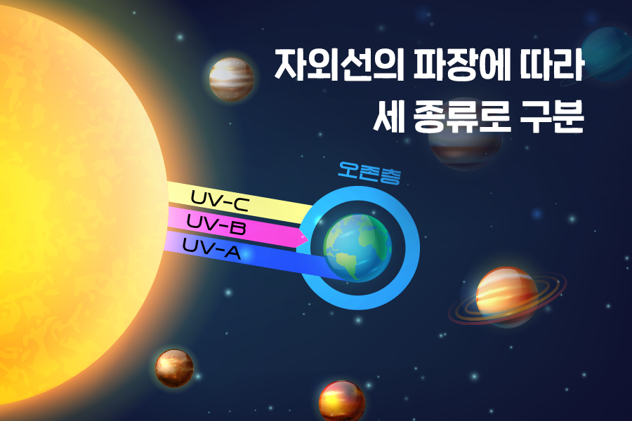 뜨거운 햇살이 내리쬐는 여름에는 강한 자외선에 노출되기 쉽습니다. 자외선(Ultra Violet)은 태양에서 지구로 들어오는데요, 자외선의 파장에 따라 자외선A와 자외선B, 그리고 자외선C로 종류를 구분할 수 있습니다.