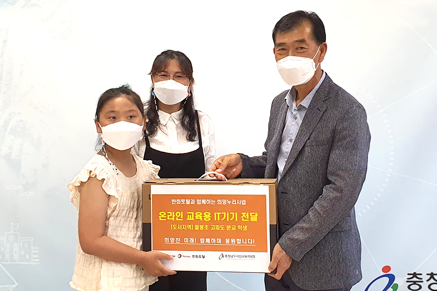 한화토탈 사회공헌위원회는 지난달 6일, 서산교육지원청을 통해 가파도에 사는 김아라 학생에게 교육용 IT 기기를 지원했습니다. 이번 교육용 IT 기기 지원은 코로나19가 장기화되며, 온라인 교육의 중요성이 높아지고 있는 상황에서 섬 지역에 사는 학생의 교육복지 제공 차원에서 추진됐습니다.