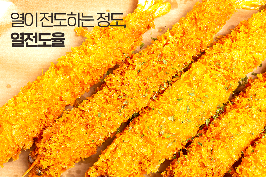 원재료의 맛을 살리기 위해서 고추나 깻잎은 160~170℃, 고기나 어패류는 180~190℃에서 튀기는 것이 가장 좋다고 하네요. 각 재료의 열전도율과 앞선 부분에서 이야기한 식용유의 발연점을 잘 생각해본다면, 더욱 바삭하고 고소한 튀김을 만들 수 있겠죠?