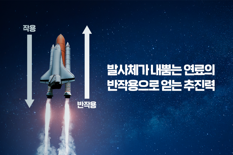 즉, 발사체가 비행하기 위해서는 연료를 내뿜는데요. 발사체가 내뿜는 연료 가스가 가진 힘의 반작용으로 추진력을 얻게 되어 높은 하늘로 솟아오르는 것이랍니다.