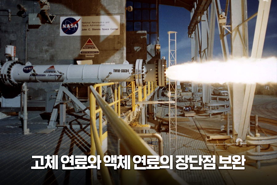 지금까지 발사체의 고체 연료와 액체 연료에 관해 알아보았는데요. 연료에 따라 장단점이 있다는 것을 알 수 있었습니다. 이 둘의 단점을 보완하기 위하여 고체와 액체 연료의 혼합형인 하이브리드 로켓도 등장했습니다.