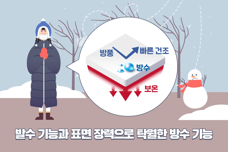 아무리 따뜻한 패딩이라도 부피가 크고 무거우면 움직임이 둔해지고, 일상생활이 불편하겠죠? 미국의 한 회사가 개발한 신슐레이트(thinsulate)는 ‘Thin(얇은)’과 ‘Insulate(단열)’가 합쳐진 단어인데요. 그 이름처럼 가벼움과 보온력, 두 마리의 토끼를 잡았습니다.