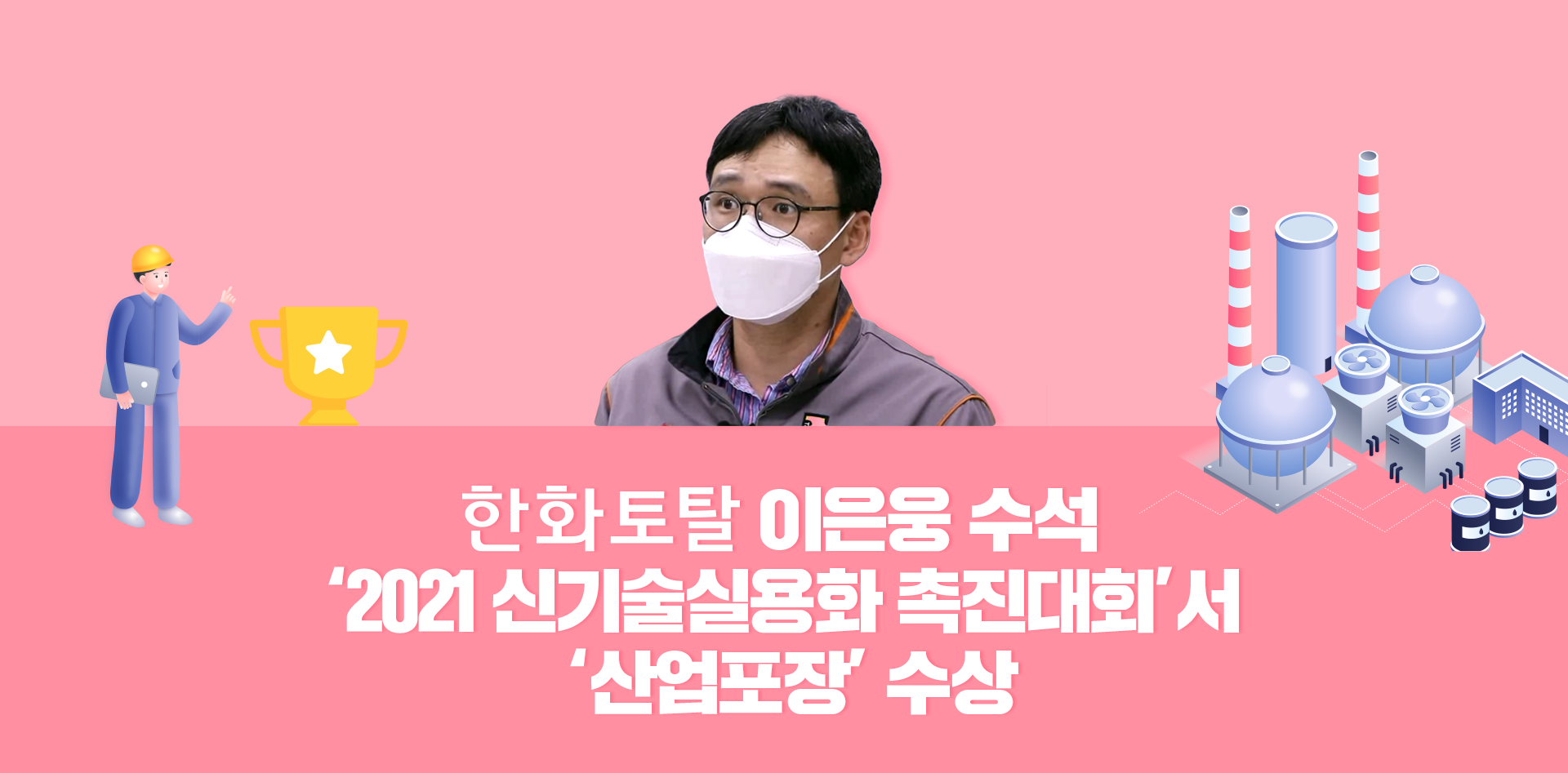 2021년 올해는 한화토탈 PP연구팀의 이은웅 수석이 신기술실용화진흥 부문에서 ‘산업포장’ 수상자로 선정되었는데요. 이은웅 수석은 친환경 전선용 PP(Polypropylene·폴리프로필렌)를 개발했습니다.