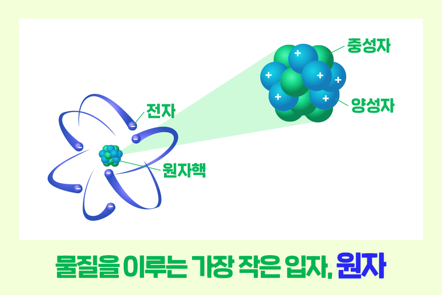 모든 만물을 구성하는 기본 입자인 원자는 원자핵과 전자로 이루어져 있습니다. 양(+)전하를 띠는 양성자와 전기적으로 중성인 중성자가 모여있는 원자핵은 원자의 중심부에 위치해 있고, 음(-)전하를 가진 전자는 그 주변을 둘러싸고 있습니다. 양성자와 전자의 수는 같기 때문에 원자는 전기적으로 중성적인 안정된 상태를 유지합니다.