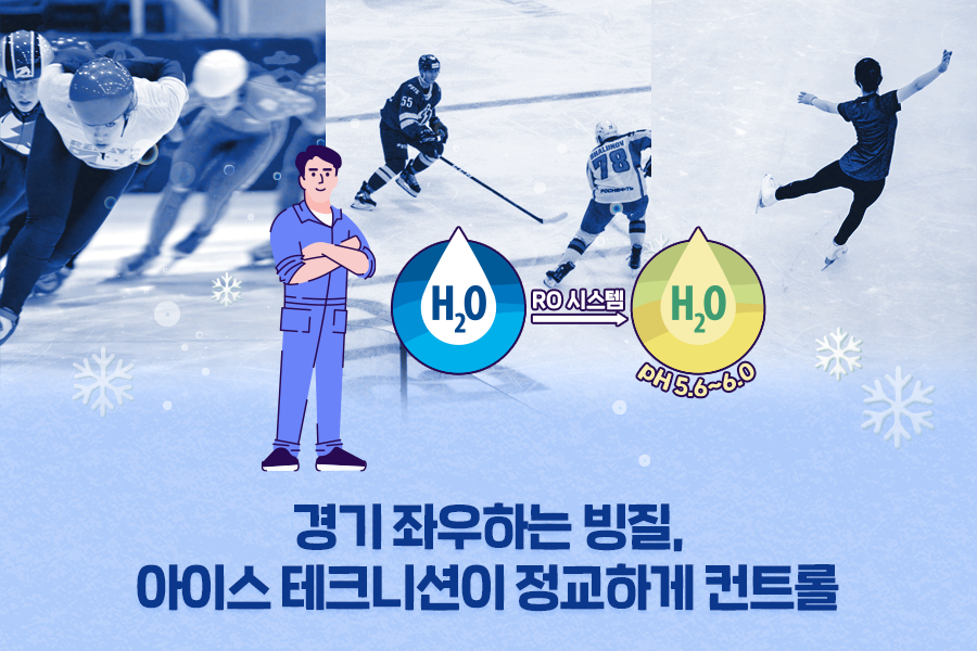 김연아 선수가 본경기 전 리허설 때 빙질을 테스트하기 위해 여러 동작과 함께 빙판을 가로지르던 모습, 기억하시나요? 얇은 스케이트 날로 얼음 위를 누비는 빙상 종목에서 빙질은 성적에 큰 영향을 미칩니다. 이 때문에 모든 경기의 빙질을 총괄하는 얼음 전문가, 아이스 테크니션이 있어 경기 내내 최상의 얼음 상태를 유지할 수 있게 합니다.