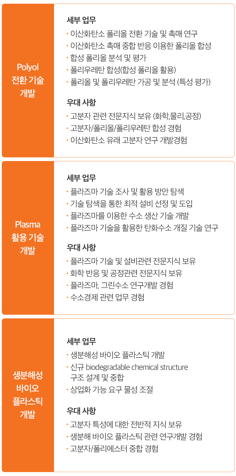 1) 화학공학·화학·고분자·신소재 등 직무관련 전공 및 석사이상 학위자