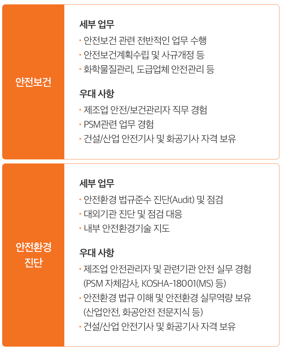 1) 안전공학·화학공학 등 직무관련 전공 및 석사이상 학위자