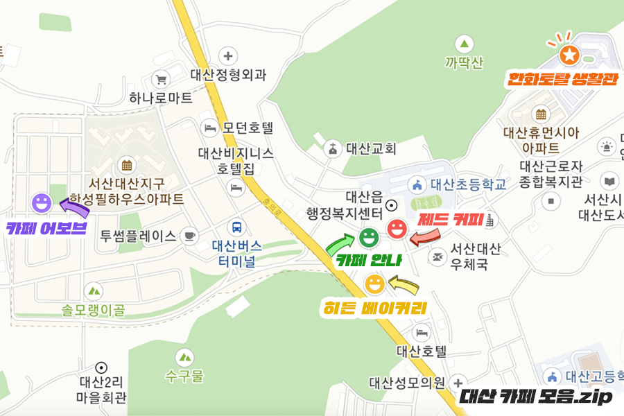 오늘은 대산에 위치한 카페 네 군데를 소개해 드렸는데요. 한화토탈 블로그지기와 함께 떠난 카페 투어 어떠셨나요? 대산 카페들은 규모는 그리 크지 않아도 각각의 컨셉이 분명한 아기자기한 카페들이 많았는데요, 바쁜 일상 중에도 커피 한잔의 여유를 즐기실 수 있기를 바라겠습니다☕