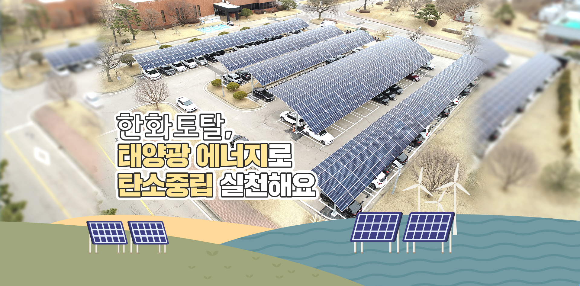 최근 한화토탈은 대산공장 내 주차장 부지에 태양광 발전설비 설치를 완료해 가동을 시작했습니다. 대산공장의 행정동, 그리고 정문 앞의 주차창 등 총 면적 4,650㎡ 에 달하는 주차장 부지에 태양광 발전설비를 설치했습니다.