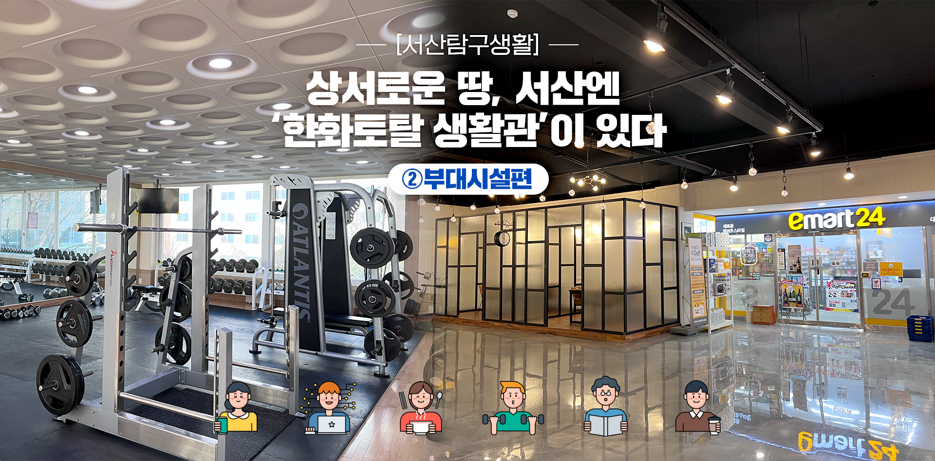 안녕하세요? 다시 돌아온 서산탐구생활시간입니다! 입춘과 정월 대보름을 지나 2022년도 어느덧 50여 일이 지났습니다. 추운 날씨는 계속되고 있지만 낮 최고기온이 점점 올라가고 있어 봄이 얼마 남지 않았음을 기대하게 하는 요즘인데요. 지난 ‘한화토탈 생활관’ 시리즈 기숙사 편에 이어 이번에는 생활관의 꽃, 기숙사의 부대시설을 알아보겠습니다. 과연 기숙사 거주 직원들은 어떻게 여가시간을 보내고 있을지 확인하러 가시죠!