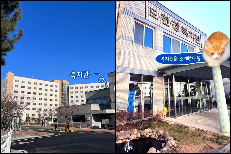 오늘도 복지관 소개를 담당해줄 기숙사 고양이들을 따라 어떤 공간들이 있는지 들여다볼까요?