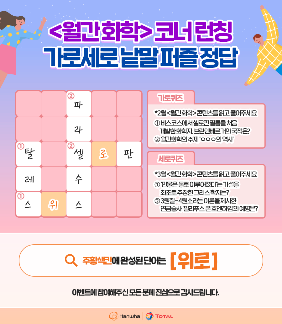 한화토탈이 준비한 이벤트가 지친 여러분들에게 잠시나마 위로가 되었기를 바랍니다.