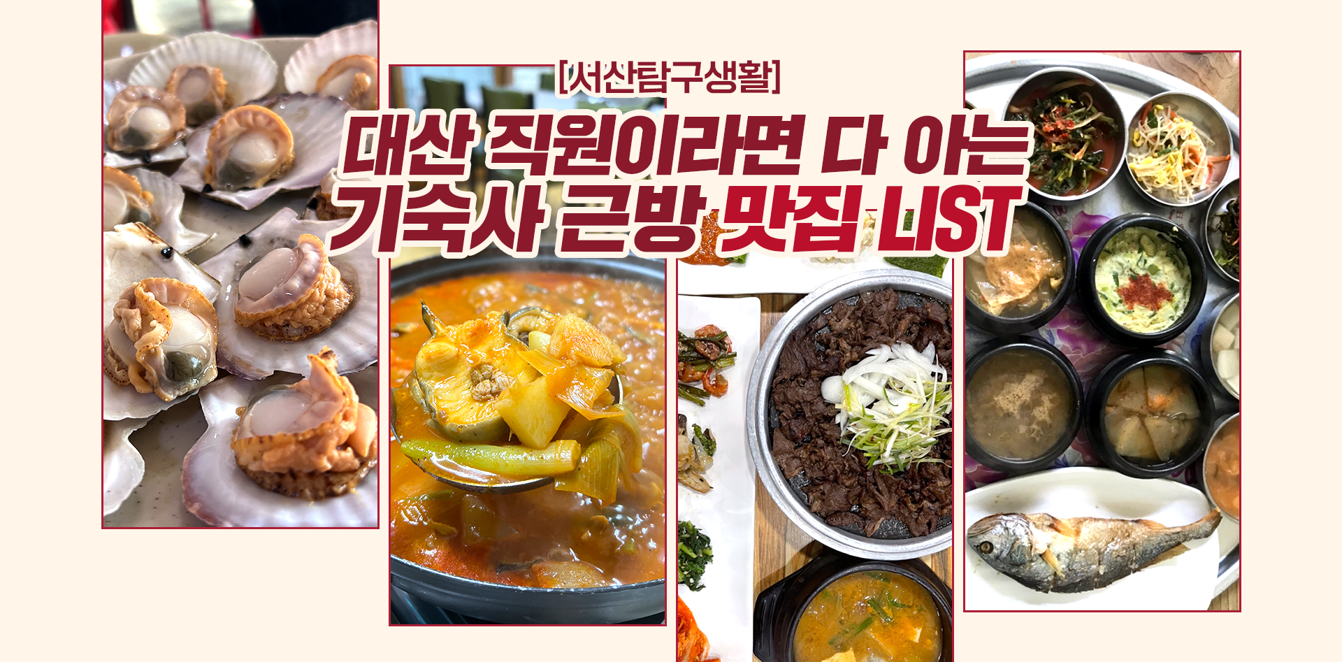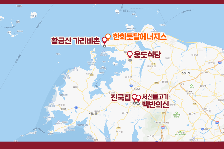 한 끼를 먹어도 제대로 먹자! 오늘은 먹기 위해 사는 맛잘알, 한화토탈에너지스의 쩝쩝 박사인 블로그 지기가 서산에 위치한 맛집들을 소개해 드리도록 하겠습니다. 대산에서 근무하는 직원분들이시라면 이 중 몇 군데나 알고 계실지 테스트하며 읽어주세요!