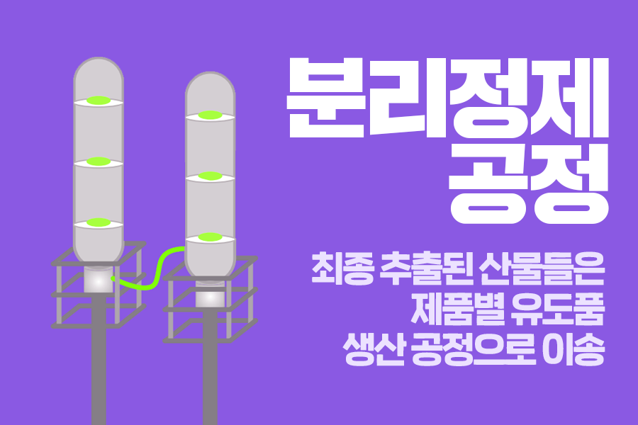 분리정제 공정을 통해 최종 추출된 산물들은 심장에서 온몸으로 혈액을 내보내듯 제품별 유도품* 생산 공정으로 이송되죠. 이로써 NCC 공정은 긴 여정의 마침표를 찍게 된답니다.