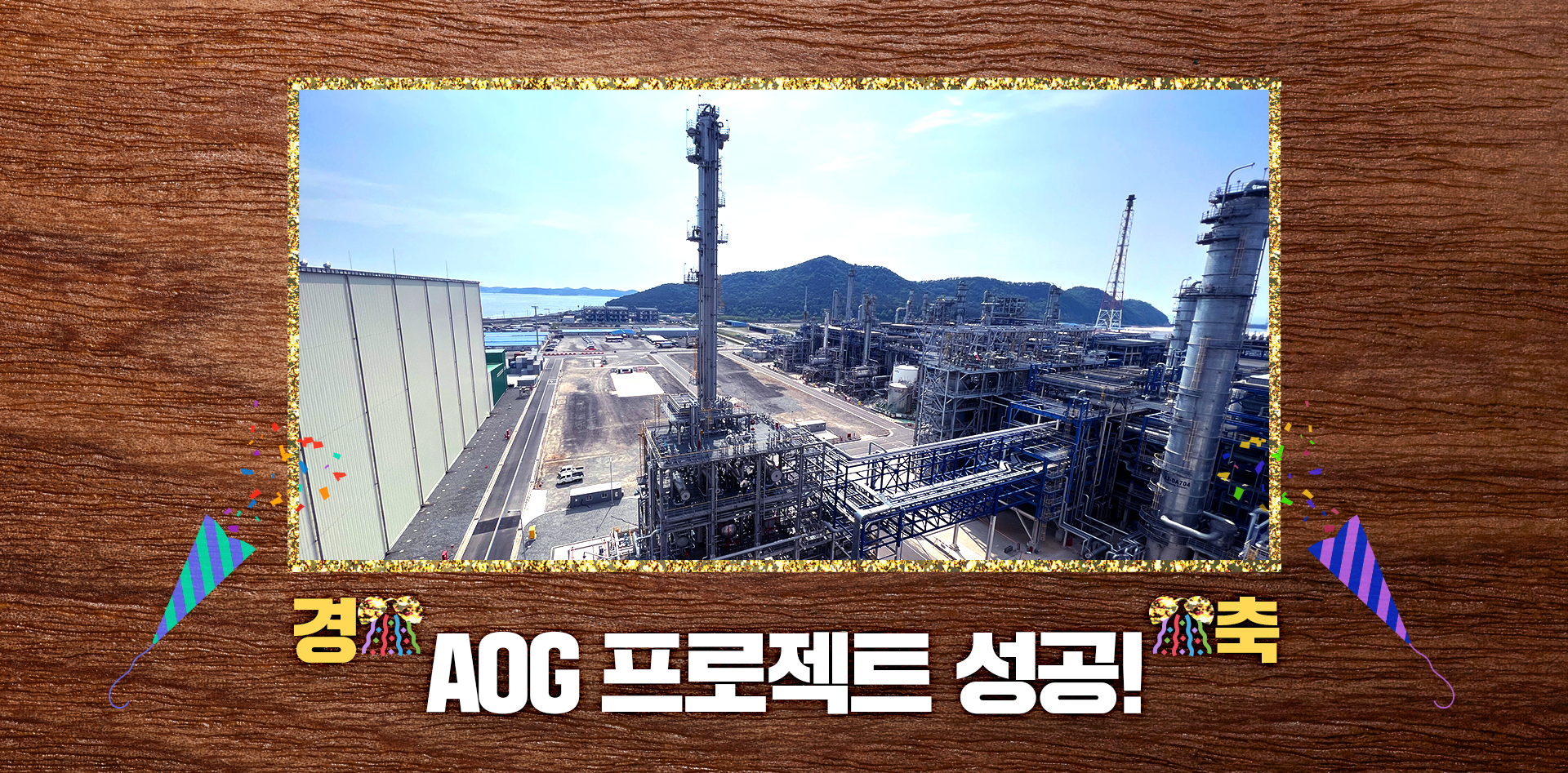 2년 동안 추진해왔던 한화토탈에너지스의 AOG 프로젝트가 성공적으로 마무리되었습니다. 긴 준비 끝에 지난 6월 4일부터 대산공장 부지 내에 AOG라는 새로운 설비가 가동 중인데요.