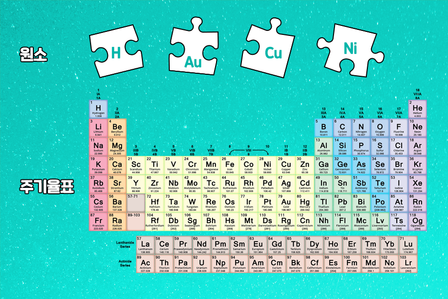자연을 구성하는 퍼즐 ‘원소’와 완성된 퍼즐판 ‘주기율표’