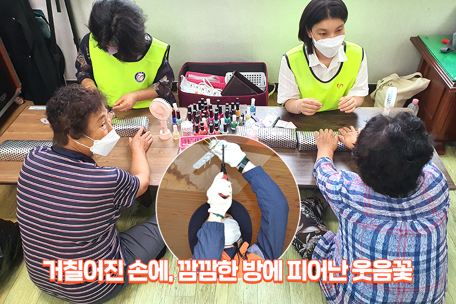 그밖에도 네일아트, LED전등교체, 스냅사진, 이미용, 네일아트, 중식봉사 등 다양한 자원봉사 서비스를 제공해드렸습니다. 바닷일로 거칠어진 손톱에 네일아트로 예쁜 그림을 그리는 봉사단의 손길에 어르신의 얼굴에도 환한 웃음꽃이 피어났습니다. 전구를 새로 갈 엄두가 나지 않아 어두웠던 방도 도움의 손길로 다시 환한 빛을 찾았습니다. 마을주민분들은 무척 기뻐하며 거듭 고맙다는 인사를 건네셨습니다.