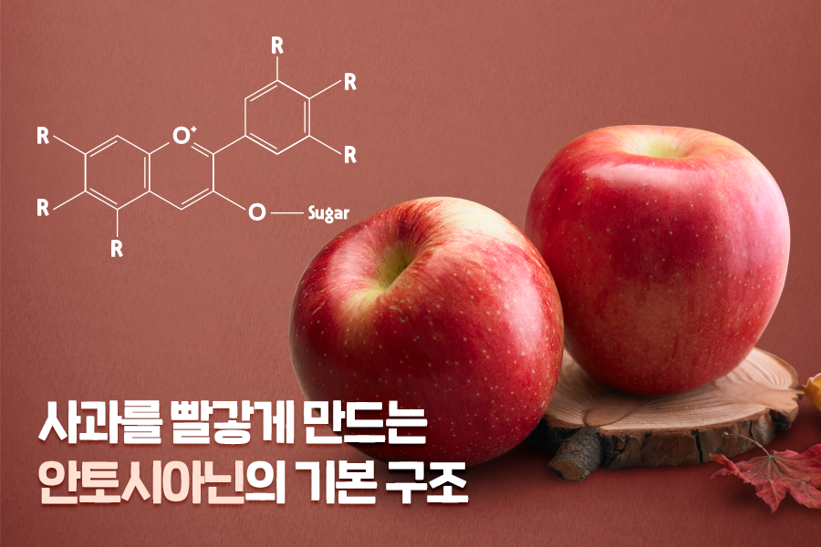푸릇푸릇한 초록색을 자랑하는 사과는 익으면서 빨간색으로 변합니다. 그 이유는 바로 사과 표피에 축적되는 화학물질, 안토시아닌(Anthocyanin) 때문이죠. 안토시아닌은 꽃이나 과실 등에 포함된 색소 배당체*입니다.