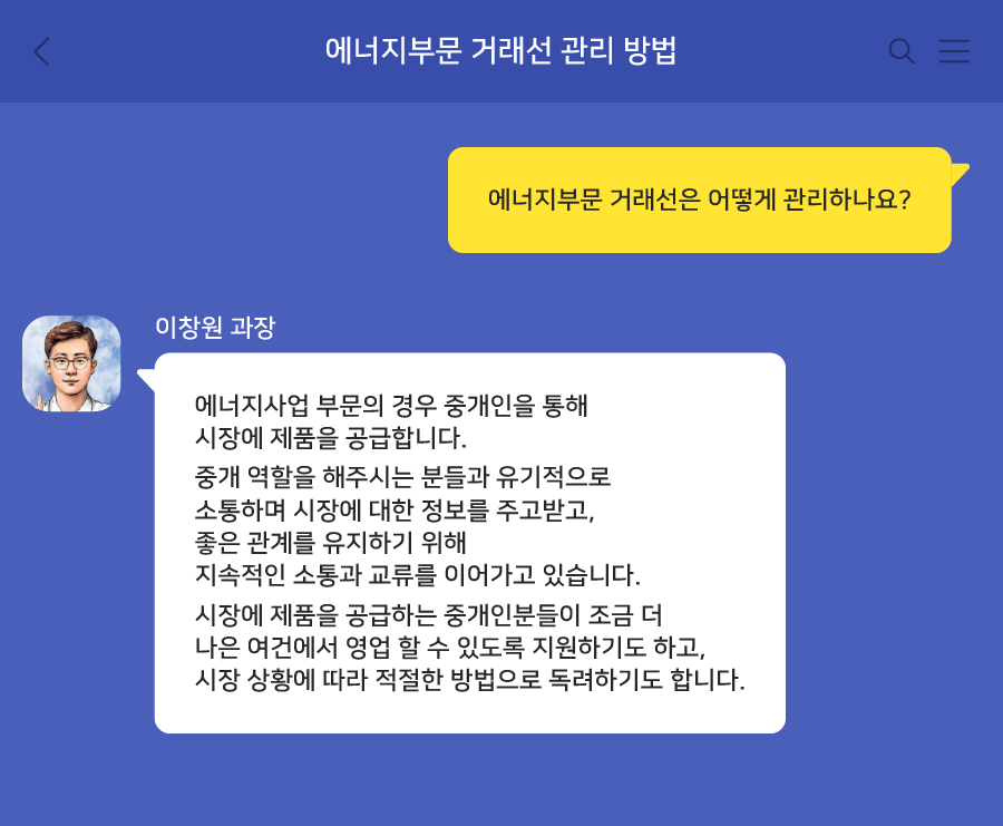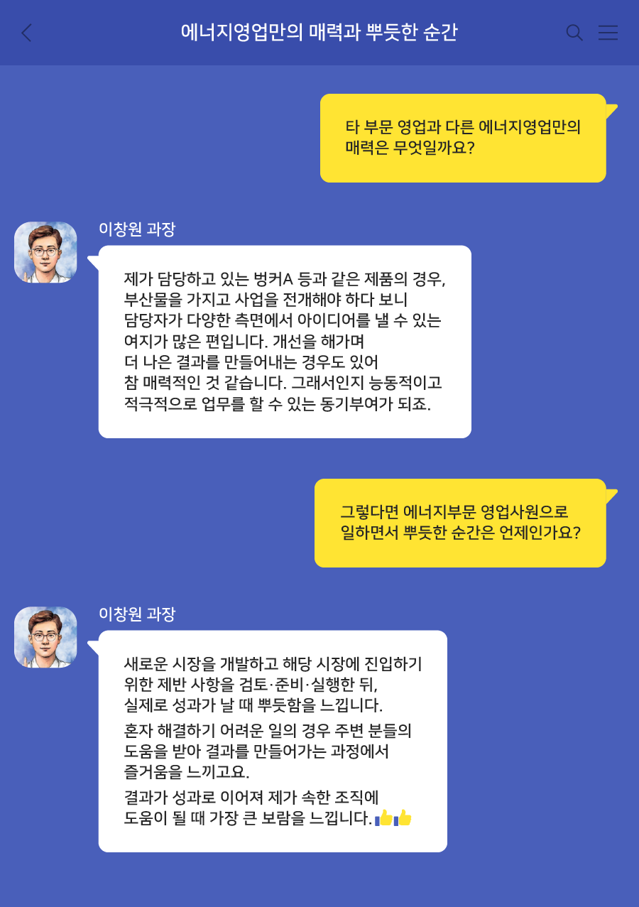 Q. 타 부문 영업과 다른 에너지영업만의 매력이 있다면?