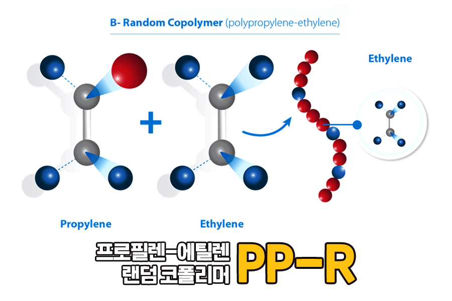 PP-R은 프로필렌과 에틸렌의 중합 과정을 거쳐 생성된 프로필렌-에틸렌 랜덤 코폴리머를 의미하는데요. 산업용 배관에서 사용되는 PP-H 재료에 비해 고압에서의 내수압성은 다소 열세하지만, 낮은 수압에서는 다른 재료와 달리 파괴되는데 걸리는 시간이 50년 이상으로 매우 길어서 냉온수관 용도에 적합하답니다.