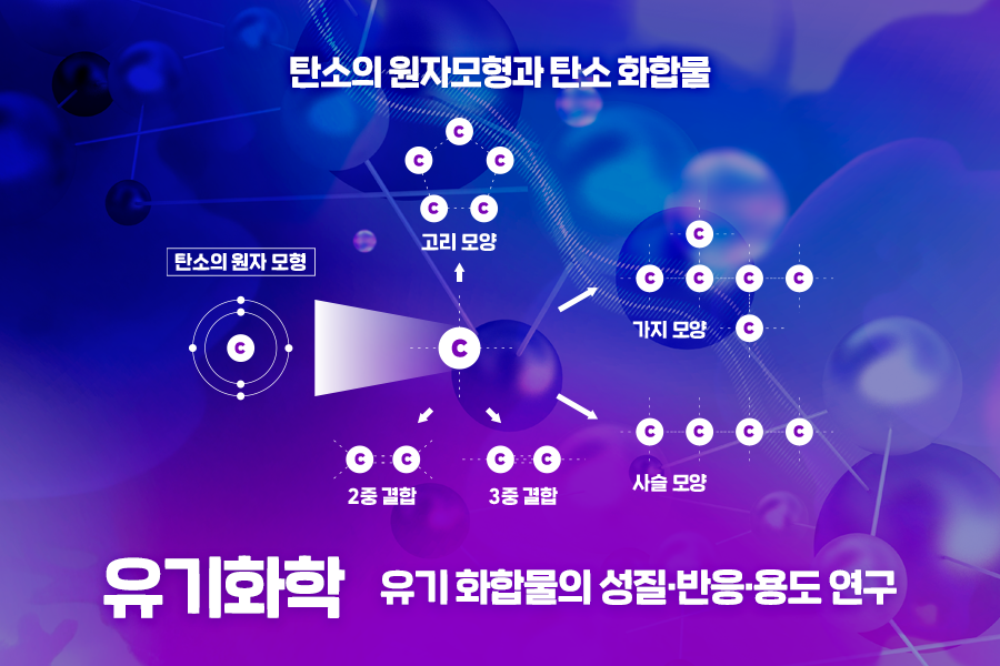 탄소의 산화물이나 금속의 탄산염 등을 제외한 탄소 화합물을 유기 화합물이라고 하는데요. 유기화학(Organic chemistry)은 이런 유기 화합물의 성질과 반응, 용도 등을 연구하는 분야입니다. 즉, 탄소가 중심이 되는 물질에 관한 학문이죠. 유기화학에서는 유기 화합물을 연구하며 알게 된 물질의 반응성을 바탕으로 새로운 유기 반응을 이끌어 내고, 효율적인 분자 구조를 디자인합니다.
