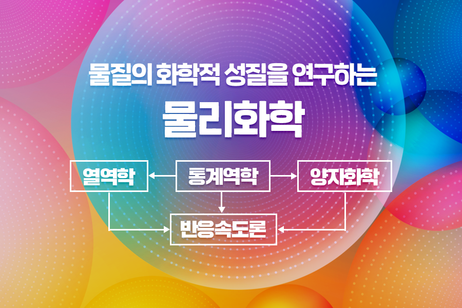 물리학의 법칙과 수학을 기반으로 화학 현상의 원리를 밝히는 물리화학! 이와 더불어 물리화학은 생명, 의학, 소재와 관련된 학문과의 복합적인 연구를 통해 현재 우리 사회가 마주하고 있는 환경·에너지·질병 등의 문제 해결에도 도움이 된답니다.