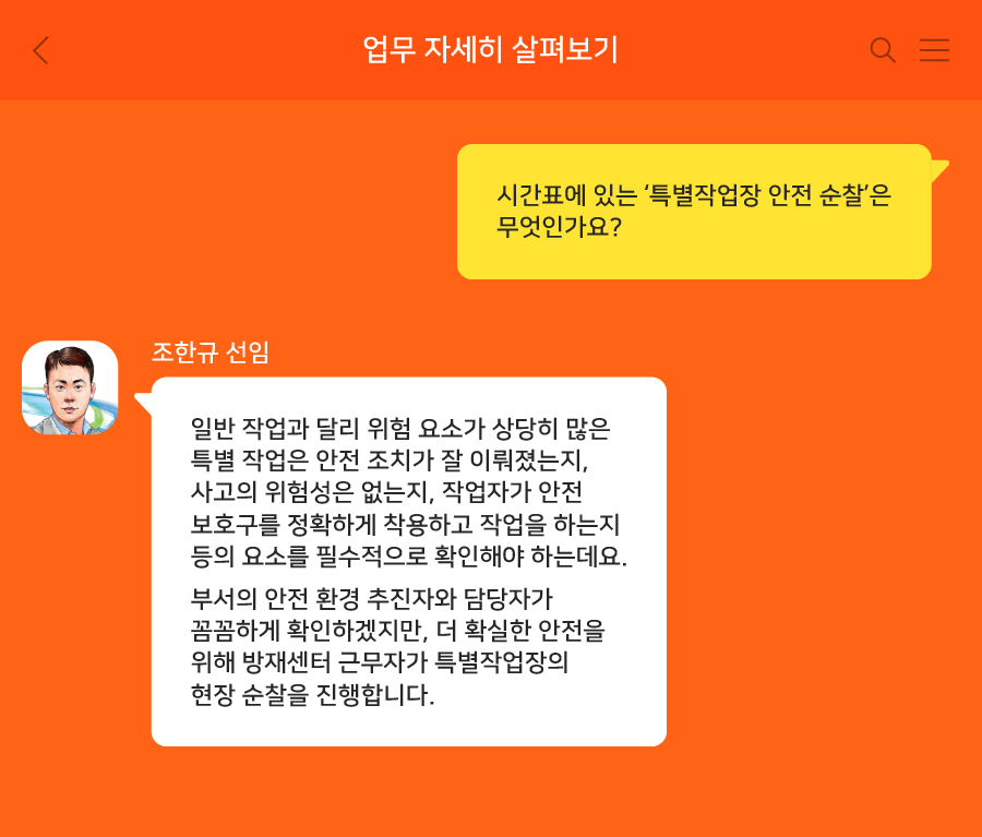 Q. 시간표에 있는 ‘특별작업장 안전 순찰’에 관해 자세한 설명 부탁드립니다.