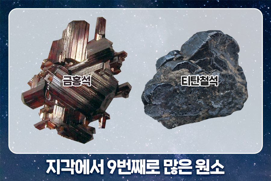 티타늄은 지각에 9번째로 많은 원소입니다. 금속류만 따지면 알루미늄, 철, 마그네슘 다음으로 많죠. 금홍석(Rutile (TiO2)), 티탄철석(Ilmenite (FeTiO3)) 등 순도 높은 광물로 존재해 채굴이 어렵지도 않습니다. 티타늄이 희귀하고 비싸게 느껴지는 것은 정제와 가공 과정이 어렵기 때문입니다.