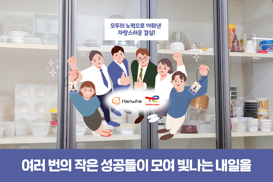 뿐만 아니라 팀 내 협업을 통해 신규 시장 진입을 적극적으로 추진하고 있으며, 고객사로부터 거래선을 소개받아 신규 공장인 PP#4의 제품 시장을 확대해 나가고 있습니다. 앞으로도 활발한 협업을 통해 작은 성공을 이어나가고 빛나는 한화토탈에너지스의 내일을 만들 수 있었으면 좋겠습니다.