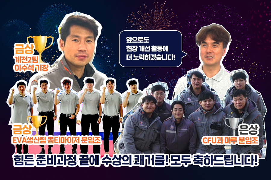 오는 11월에는 제49회 전국품질분임조경진대회의 시상식이 있을 예정인데요. 수상하신 모든 분들께 다시 한 번 축하의 말씀 전하며 한화토탈에너지스는 언제나 새로운 시도와 혁신, 더 나은 생산 현장을 만드는 일에 최선을 다할 것을 약속하며 마무리하겠습니다.