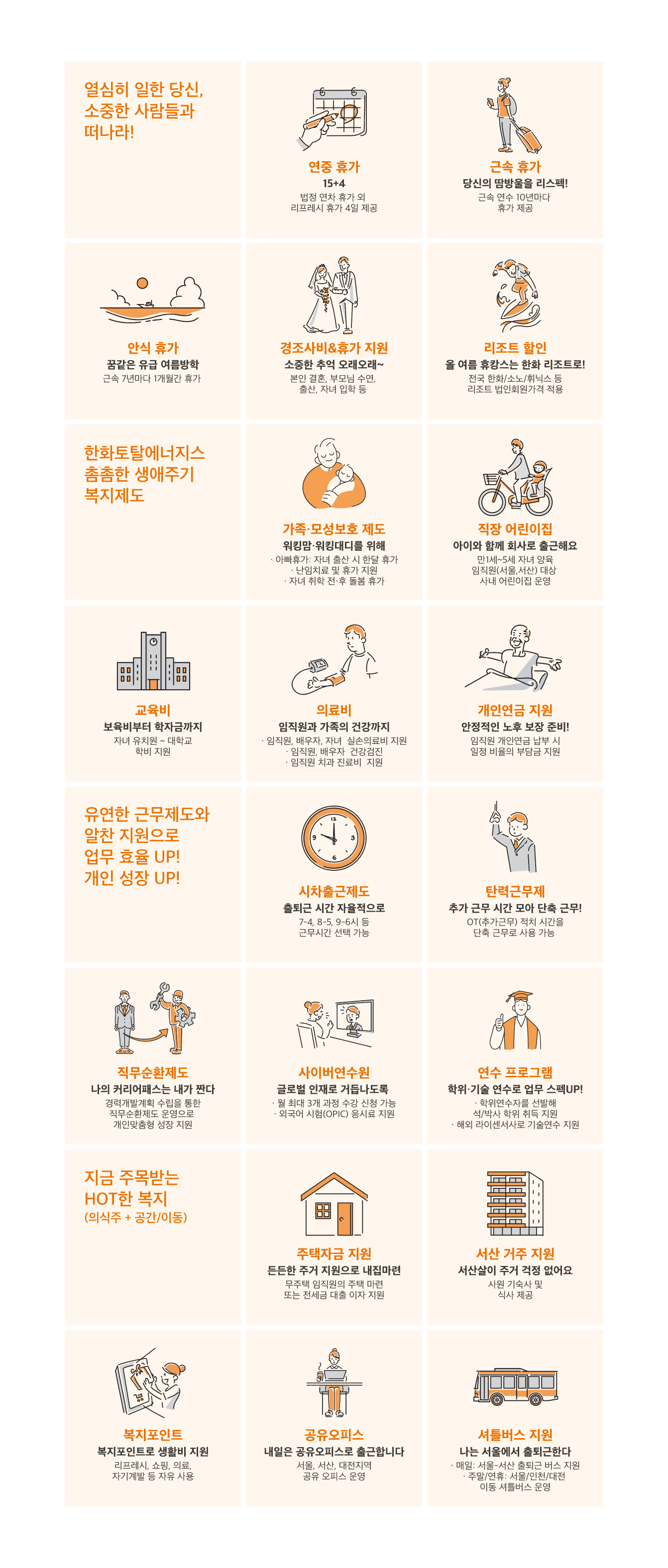한화토탈에너지스에 입사하면 체감할 수 있는 더 많은 복지들이 기다리고 있답니다.