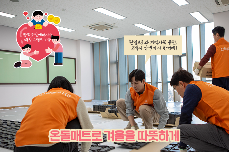 온돌매트 시공사업을 위해 한화토탈에너지스가 서울시사회복지협의회에 기부한 1900만원은 더욱 특별한 의미가 있었는데요. 한화토탈에너지스 임직원 기부금과 함께 운영 중인 회사의 매칭 그랜트 기금으로 마련되어 상생의 의미를 더했답니다.
