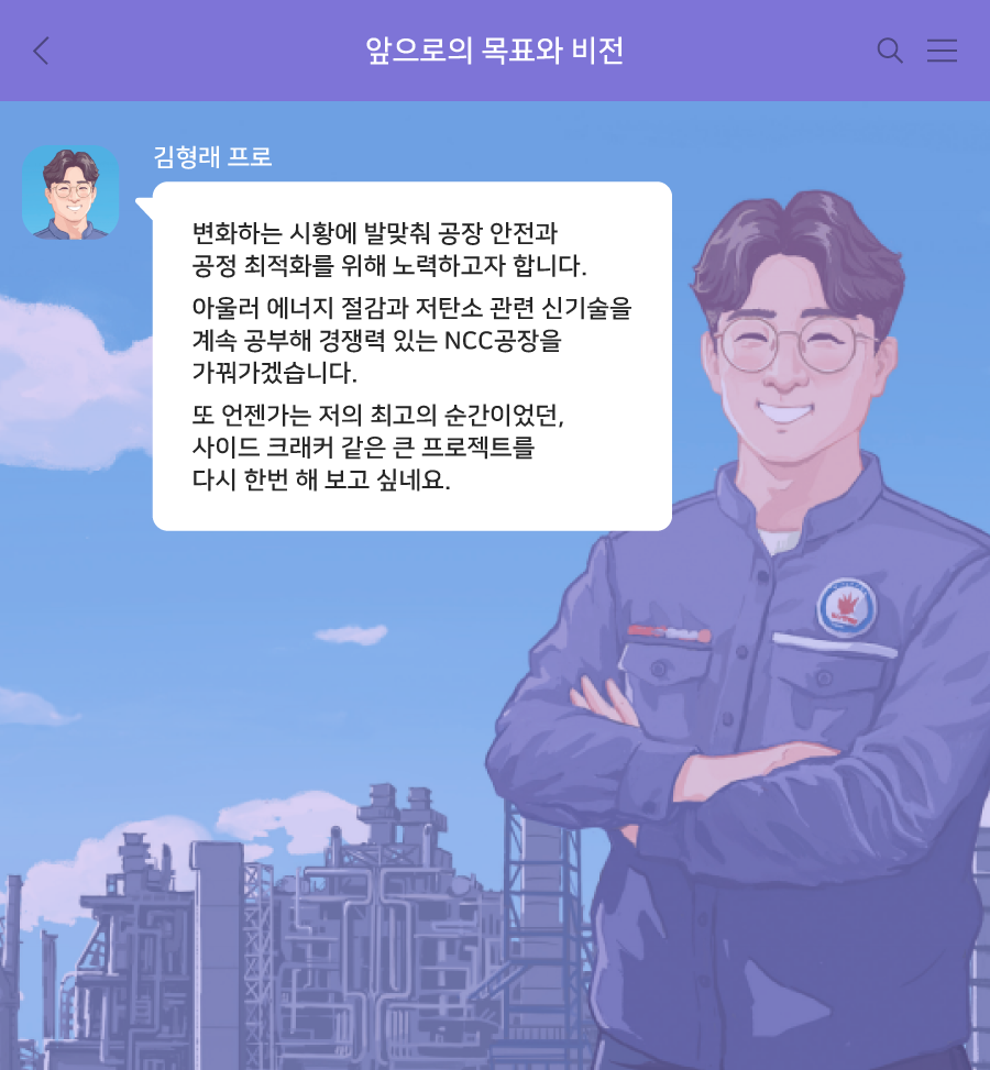 뜨거웠던 여름, 설계 능력 뿐 아니라 자신감까지 가지게 해 준 사이드 크래커 건설 프로젝트는 김형래 프로가 꼽은 한화토탈에너지스 최고의 순간이자, 한화토탈에너지스 NCC 발전의 영광이기도 했습니다. 또 다른 프로들의 최고의 순간은 언제일까요? 다음 최고의 순간으로 만나요~